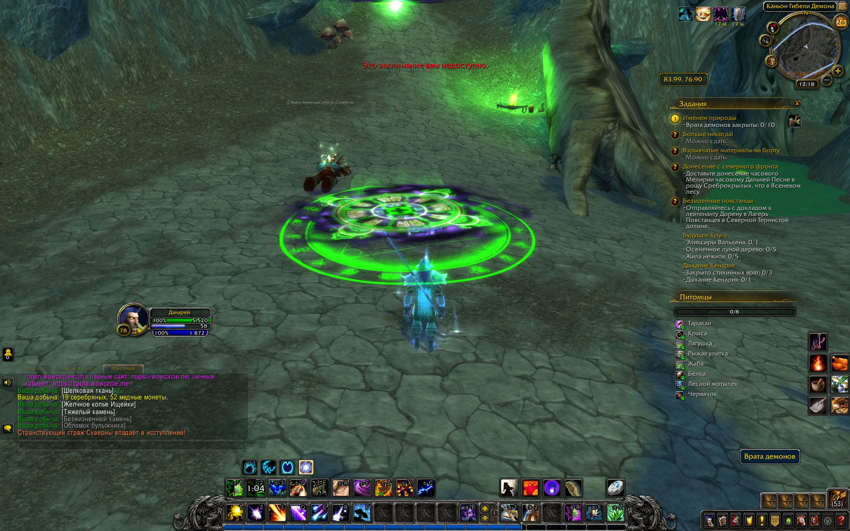 3. Использование https://ru.wowhead.com/item=45545/ветвь-кривокрона на Врата демонов должно работать; должна быть активная анимации, а после засчитываться закрытие портала