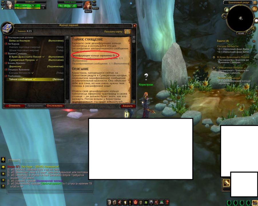 Я начал делать квэст на клыки отца, выкрал кольцо, 12 часов ждал, открыл, достал сообщение, но оно не отдается!!!
