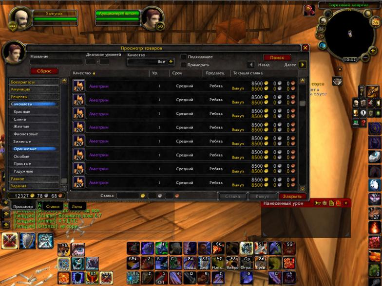 у меня знакомый в орде ты не видел че у него в сумках и на ауке творитьса он ток в игру заходит чтобы камни поделать ))также всех видов полно