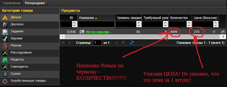 Здравствуйте, уважаемая администрация. Столкнулся с проблемой, исключительно из-за моего неведения о проведении операции обмена бонусов на итемы, в частности, на итем "Жетон прославленного ювелира". При совершении операции мною не было указано количество итемов, приобретаемых за 270 единиц бонусов, то есть по сдельной цене в 270, я получил лишь один итем, поскольку не придал значения вкладке "количество" - банально подумав о том, что под ней подразумевается не кол-во итемов, а количество стаков (1 - 5000, 2 - 10000 знаков ювелира).Вложение 263315