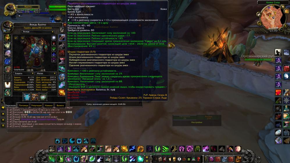 1 Razimo; таурен;орда; 6,2/6450 пвп/пве сова; 6,1 пвп рестор