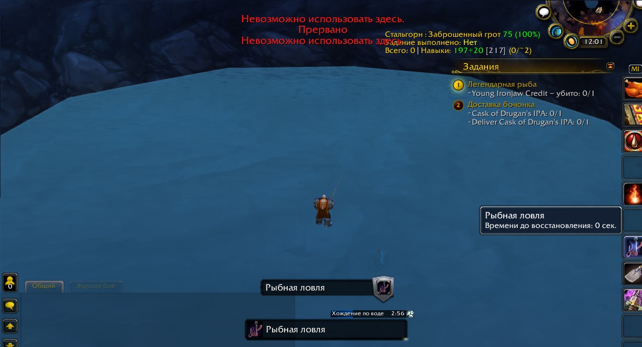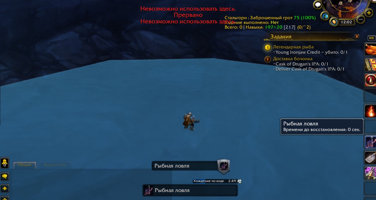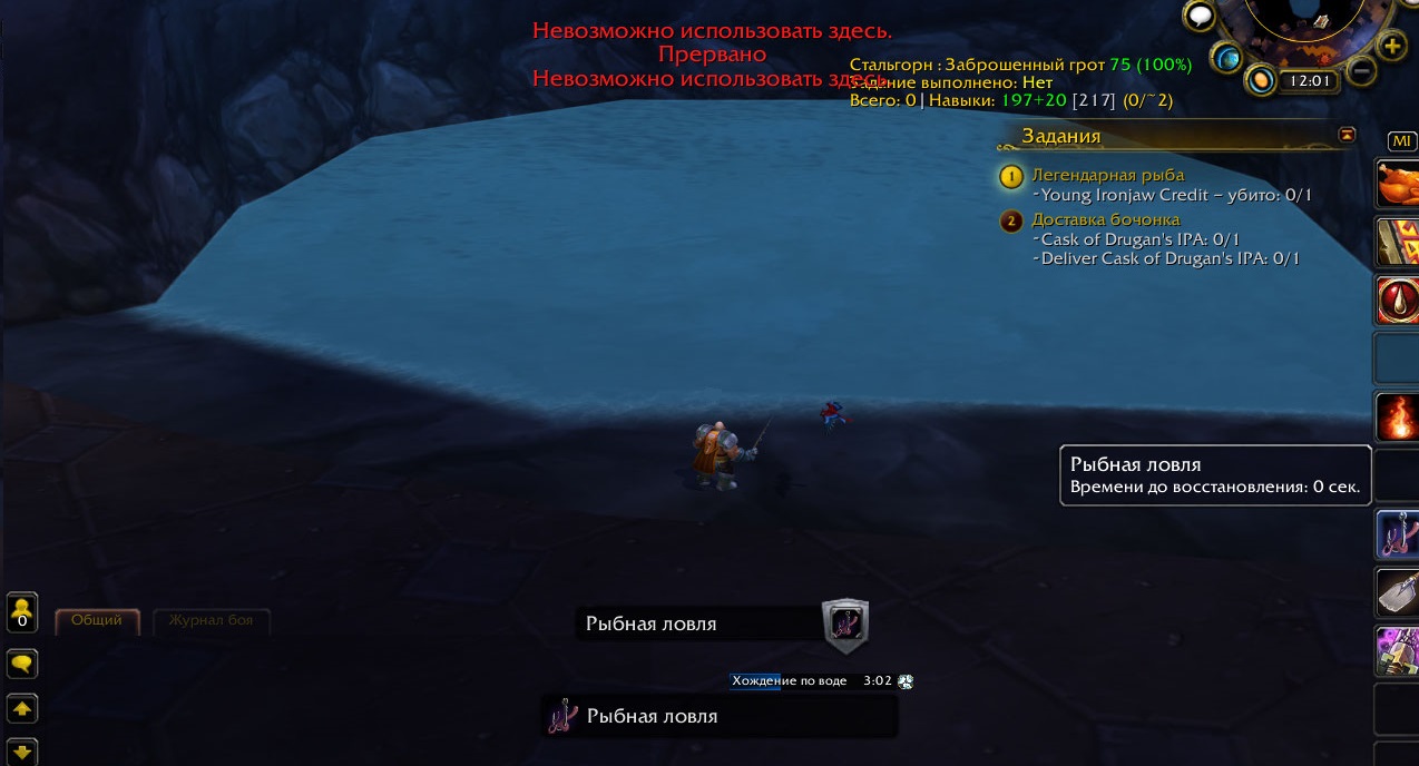 2. Нельзя ловить в гроте, не забрасывает удочку.