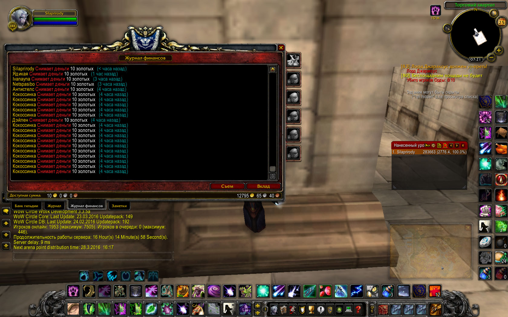 4. В моей гильдии разрешено снимать всем по 10 голд в день. Путём ливания и повторного добавления в гильдию, снимал много раз по 10 голд.