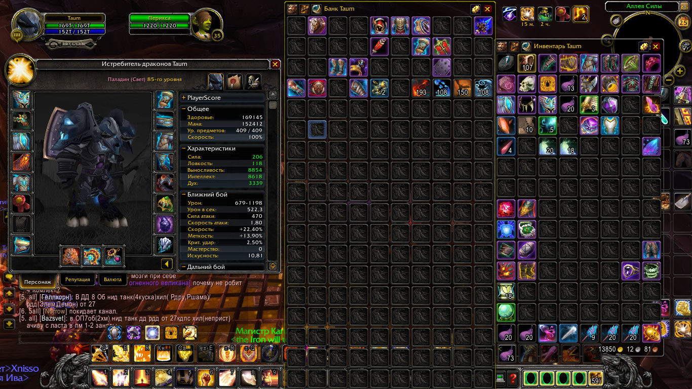 1. Имя персонажа, класс, фракция, спек, ГС. Бис ХПАЛ пве/пвп , ретрик 400+ , танк 400+- Орда Taum . фулл профы (алхимия, наложение чар)