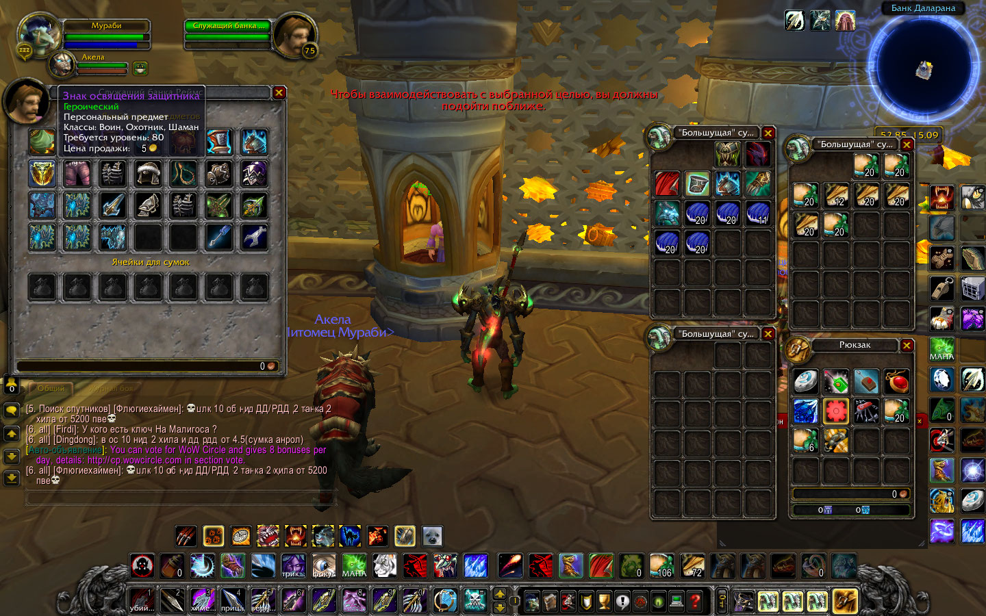 2. Скрины персонажа (не менее трех!!!), на которых видно ваши вещи, открытые сумки, достижения и т.д., такая себе презентация персонажа в скринах.
