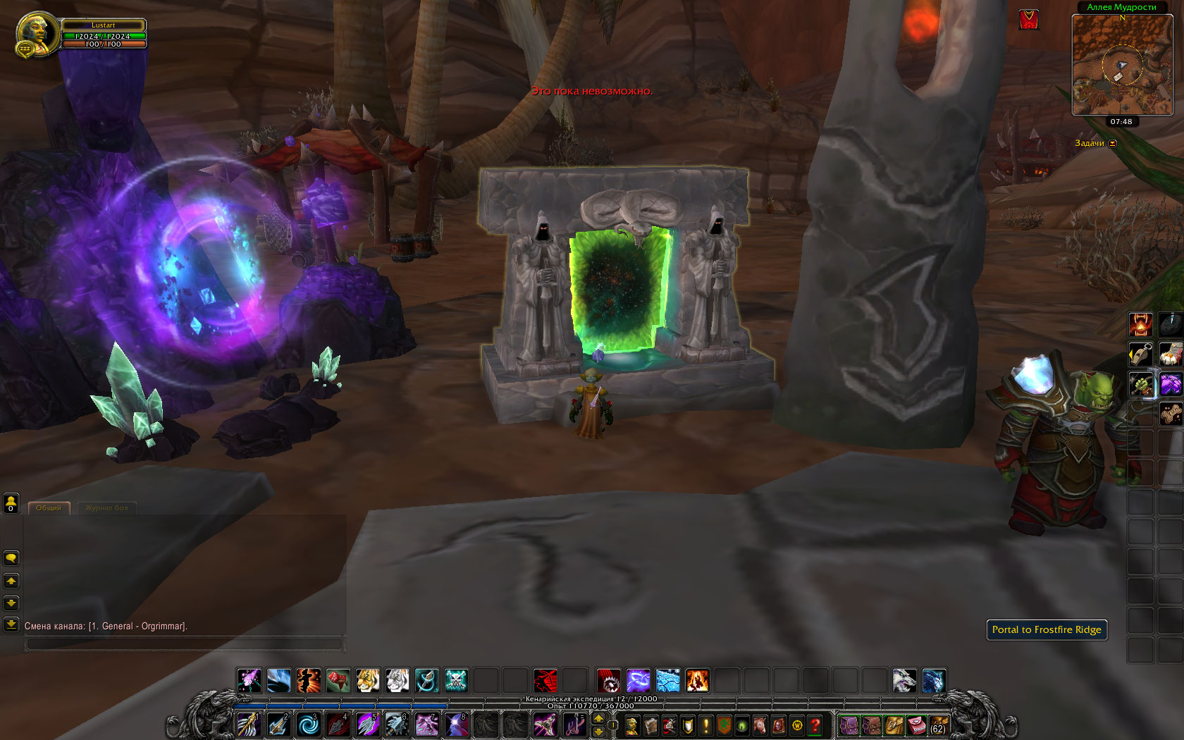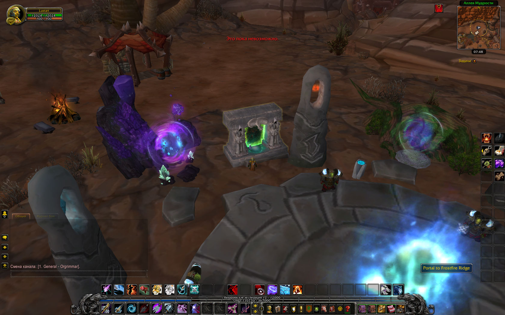 В Оргриммаре есть два портала прямо в Запределье (без Выжженных) - один в Аллее духов (у троллей) возле учителя начертания на 2 этаже коморки; второй - в Волоке, но не там, как обычно, а правее и чуть выше - между учителем рогов и торговцем ядами.