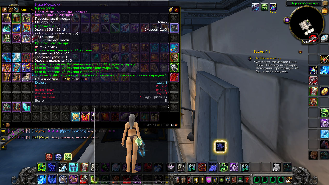 Вложение 360645тут вы видите адк пве,полностью бисВложение 360653тут вы видите пвп ачивы/2c/3сВложение 360652-наплеч 416,все по кайфу Вложение 360651тут вы видите маунтов,это не все) Вложение 360650 тут вы видите нокалед хм!Вложение 360649 для заядлых пвпшеров так же есть нокалед об) Вложение 360648 кончено же гурта хм Вложение 360647 бдк 407 бисс,плашик с оп хм,так же в банке есть спина за хонор,мало ли) Вложение 360646 банк,различное кол-во трансов,ткт,сб,тчвВложение 360654 сборочка пвп!