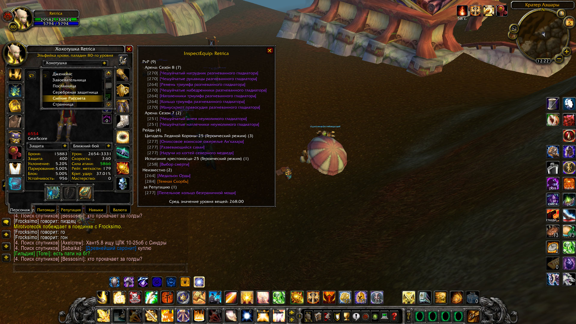 1. Имя- Retrica, рпал, орда, пвп ретрик-6.5+, пве рпал 6.7+, остальное видно на скринах.