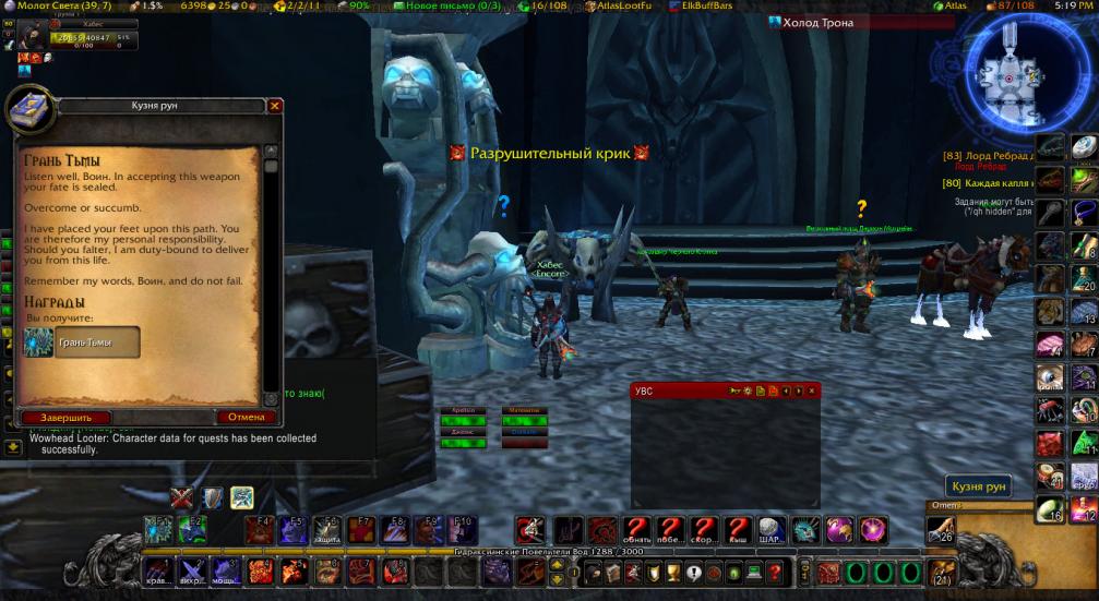 админы подскажите в чем дело.... все реагенты сдались,но грань не получил...окно с (завершить) есть ,но не прожимается... и на кузни просто знак вопроса синий.. надеюсь на помощь.. логон x20Вложение 55928