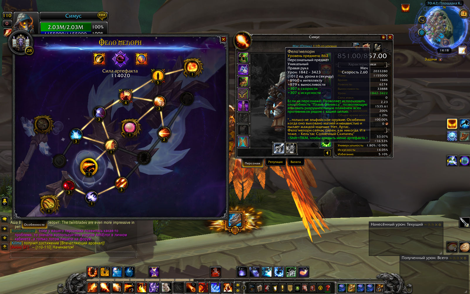 Ник Симус, альянс, фаер 851 илвл, 28 арт, 21 знание.