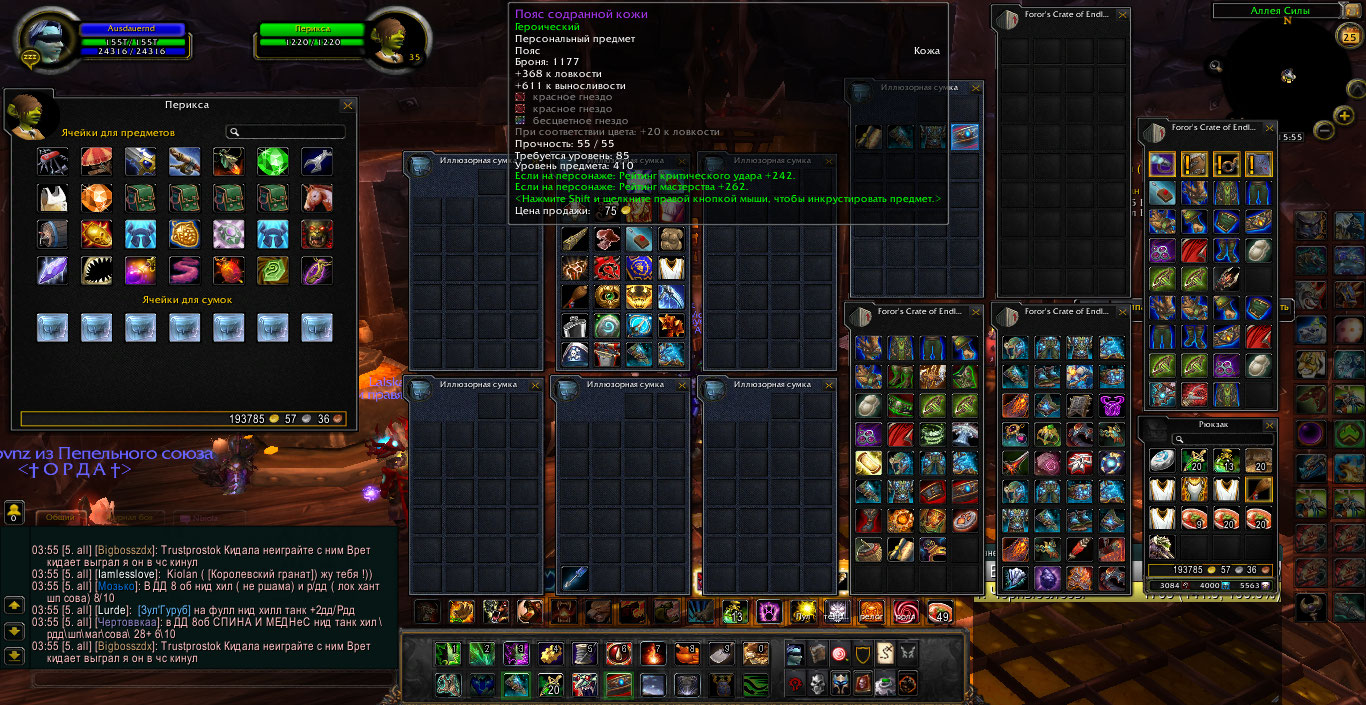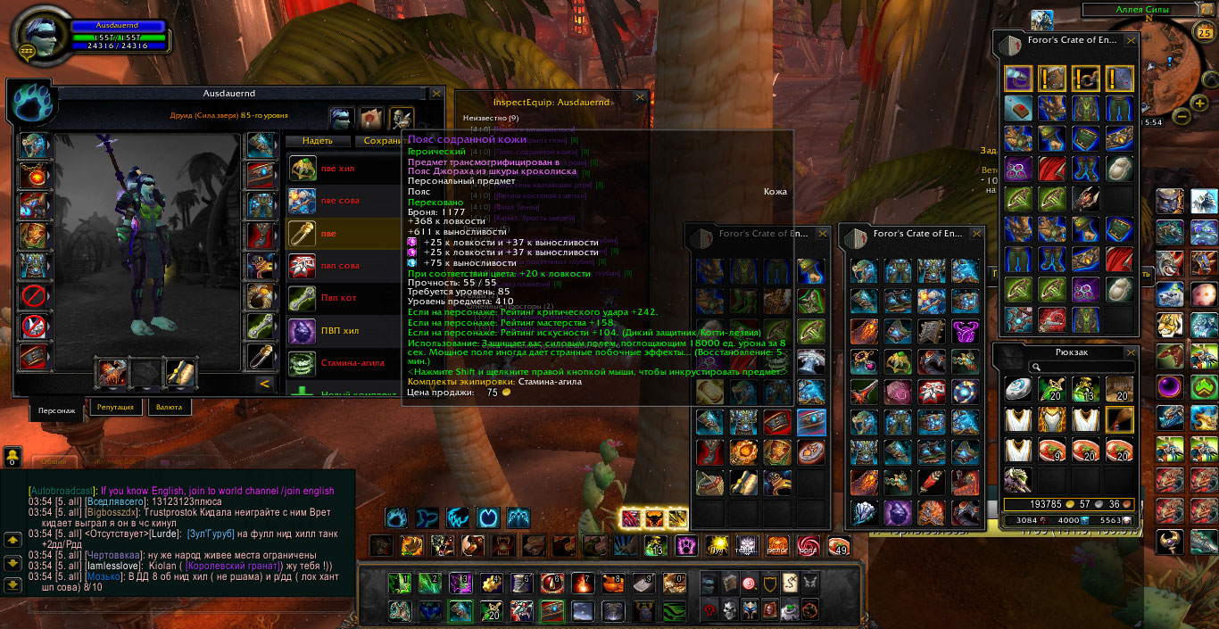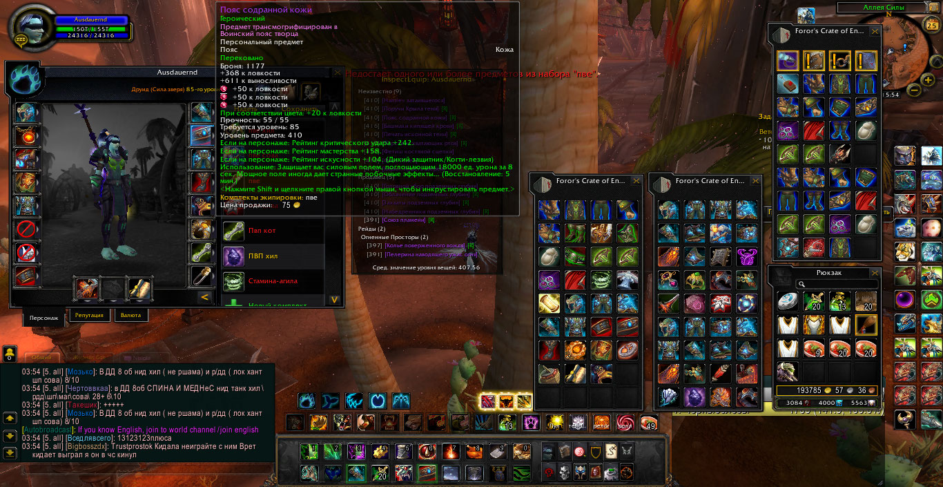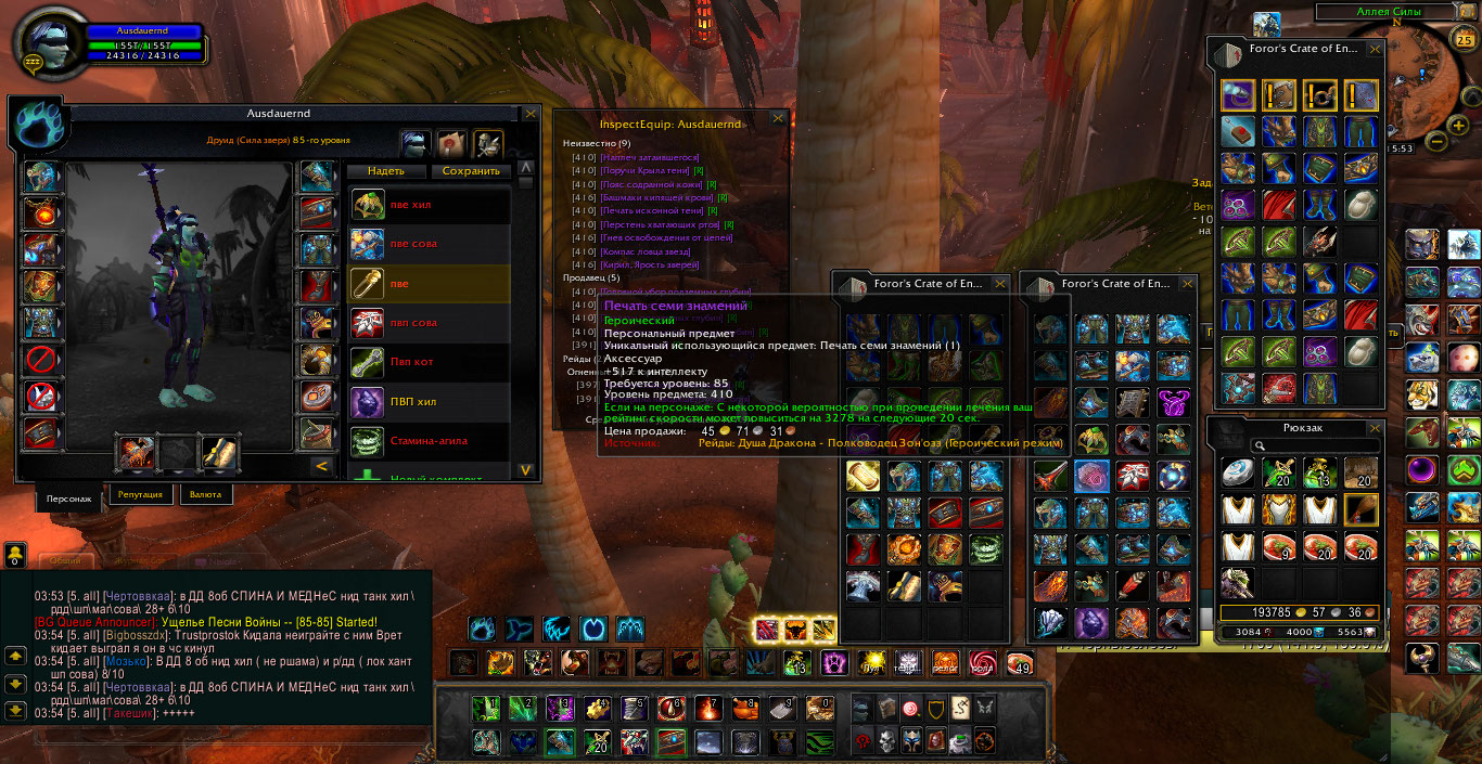 Фул бис пве на мишку 2 сета, фул агила/фул стамина, бис Сова, бис рдру - фул бис т2 на все 3 спека, так же много донат маунтов. торг уместен цена 3500+%, с продажей не спишу. Найдется покупатель выставлю