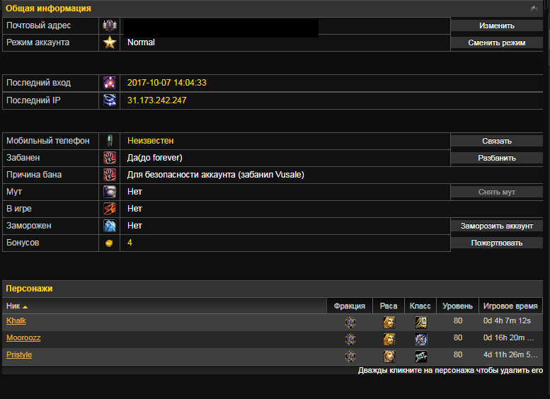 1. Указываете все ники персонажей находящихся на заблокированном аккаунте-Pristyle,Mooroozz,Khalk