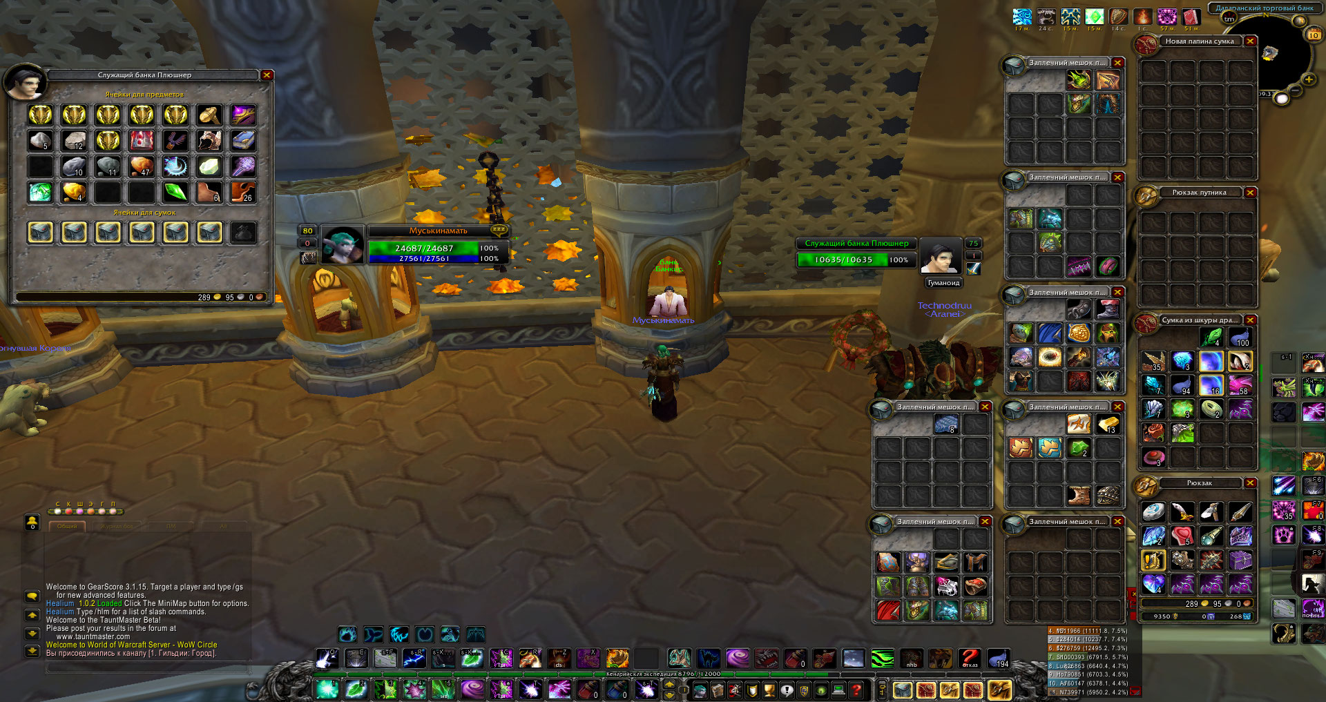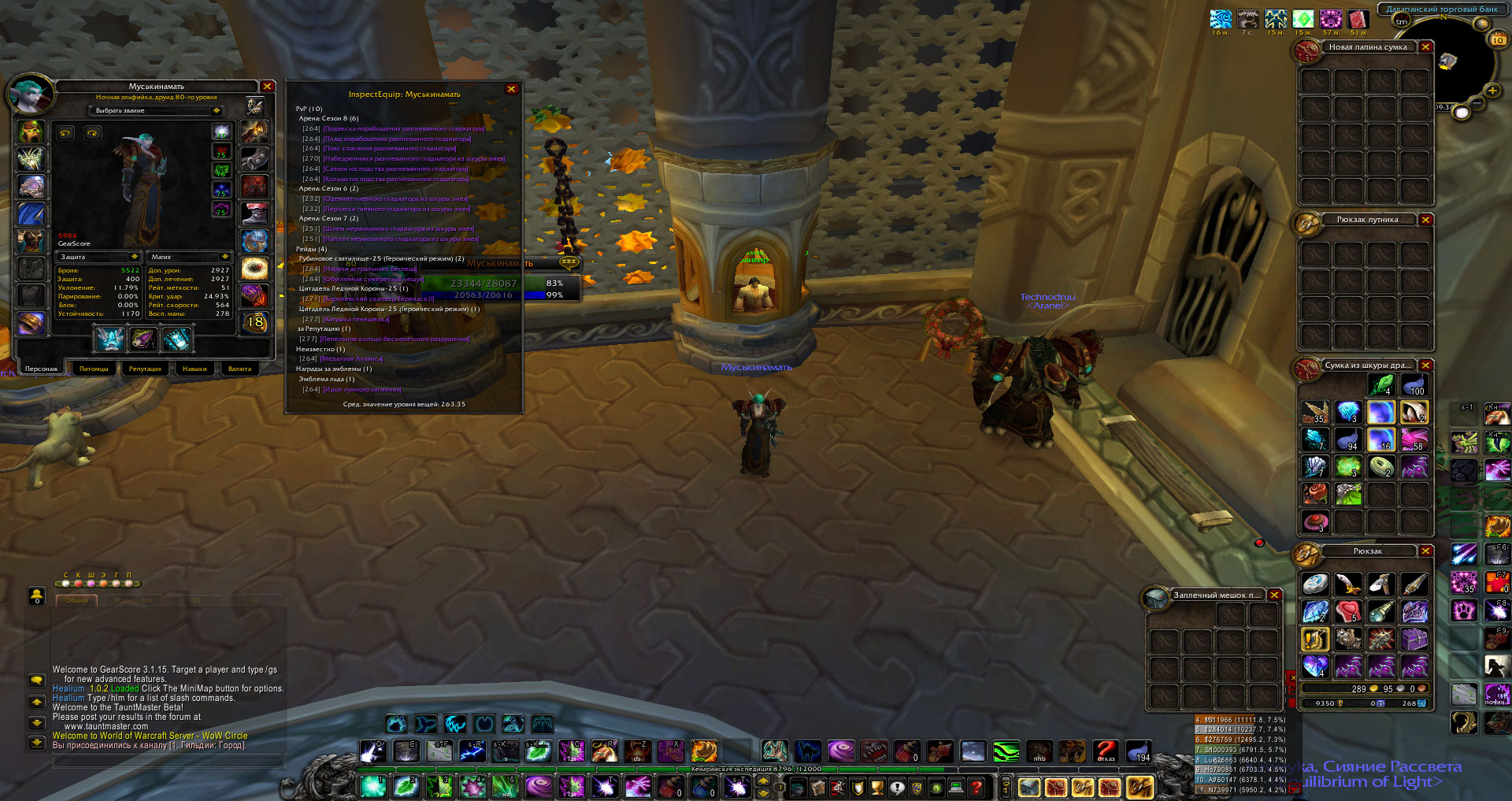 Скрины персонажа (не менее трех!!!), на которых видно ваши вещи, открытые сумки, достижения и т.д., с командой .server info (Обязательно)