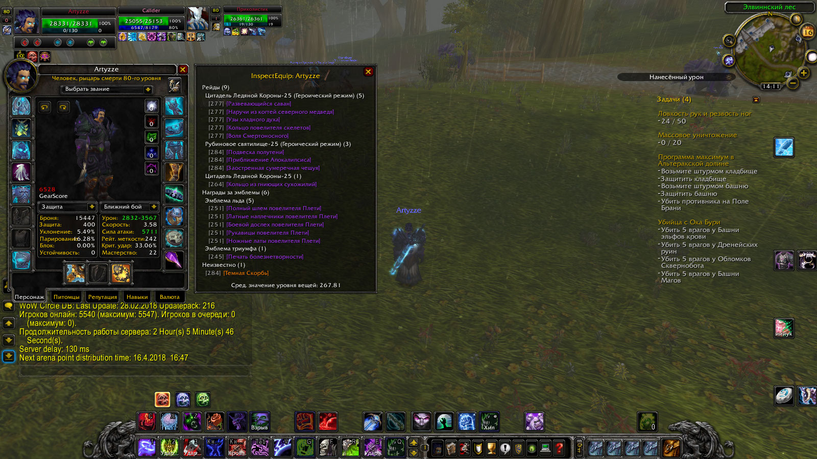 Скрины персонажа (не менее трех!!!), на которых видно ваши вещи, открытые сумки, достижения и т.д.,