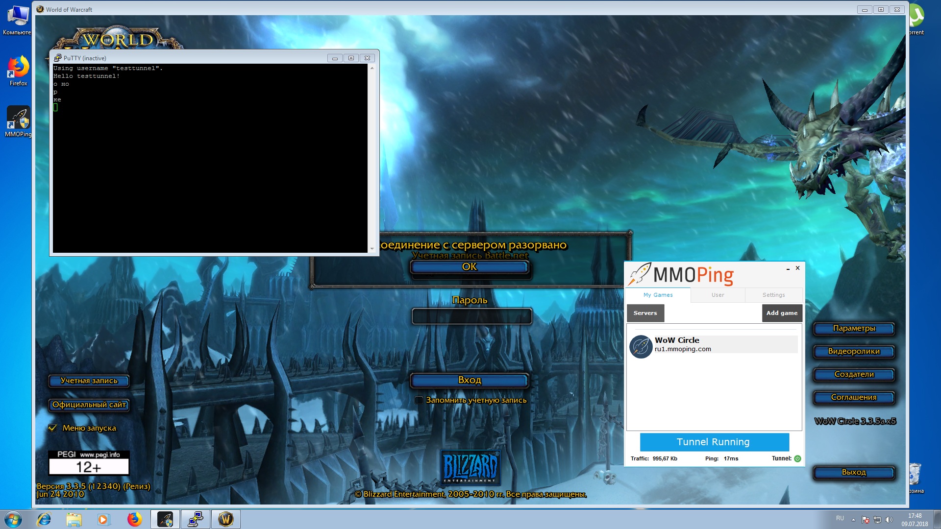 Играю я на вашем проекте давно, все нравится. в середине той неделе решил зайти посмотреть как поживает мой любимый circle. поиграл, порейдил, уехал на все выходные за город. вернулся поздно вечером дай думаю закрою геройки. зашел на сервер, нашел пати, проходим и тут бац и вылет "разорвано соединение с сервером", думаю онлайн большой все хотят поиграть вечер выходного дня, перезашел, пустило сразу. спустя буквально 20-30 секунд ситуация повторилась. с горем пополам убили ласта. подумал завтра все будет ок, но сегодня не ок. ситуация не изменилась. качал клиент 3 раза заново и с мейн ссылки и с зеркала. винду переустановил на всякий случай, не помогло. посмотрел форум с пятницы, были такие же проблемы, кому клиент помог, кому ничего не помогло. ну уж после переустановки винды и свежего клиента я не знаю что еще сделать.