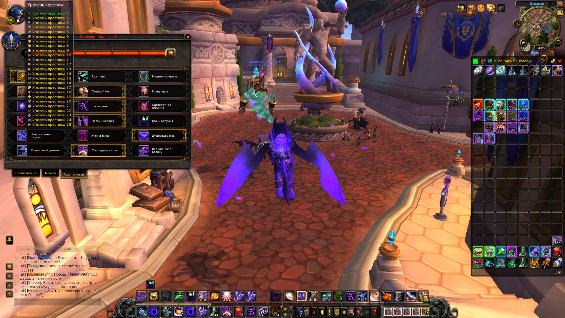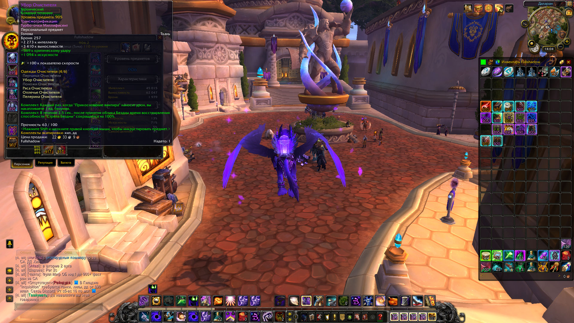 5. 1 престиж взят, полеты по легиону открыты, профы зачарование и шитье, у швеи сделан квест на 30 слотки, куски сета есть 2\6 и 4\6, вещи для переодевания в другие спеки тоже есть, легендарок 5 штук, https://ru.wowhead.com/item=132409/%...BD%D0%B4%D0%B0, https://ru.wowhead.com/item=132437/%...D0%B7#comments, https://ru.wowhead.com/item=144259/%...B5%D0%BD%D0%B0, https://ru.wowhead.com/item=144247/%...B0%D0%BB%D0%B0,https://ru.wowhead.com/item=132449/%...B8%D0%BA%D1%81