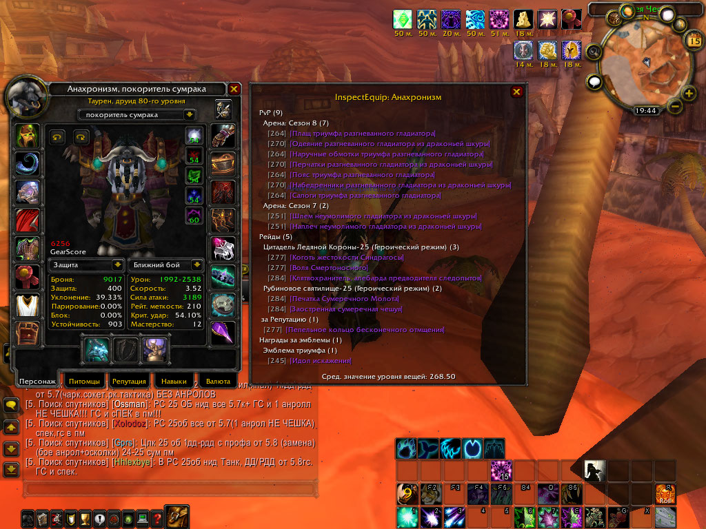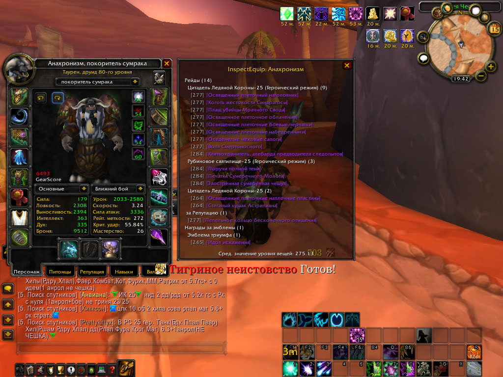 Анахронизм, орда, таурен. Кот 6.5 пве, 6.2 пвп есть 3 из 5 а8