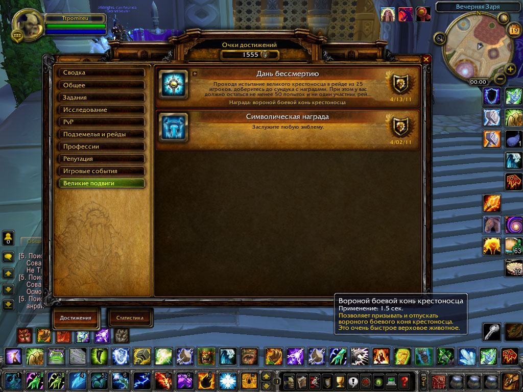 1)Ttpomiteu-Орк(Орда) Есть найс Звания, Всепобеждающий,Верховный вождь,Сын(Орды/Альянса),Коняшка за ачиву.Чар 2011 года.