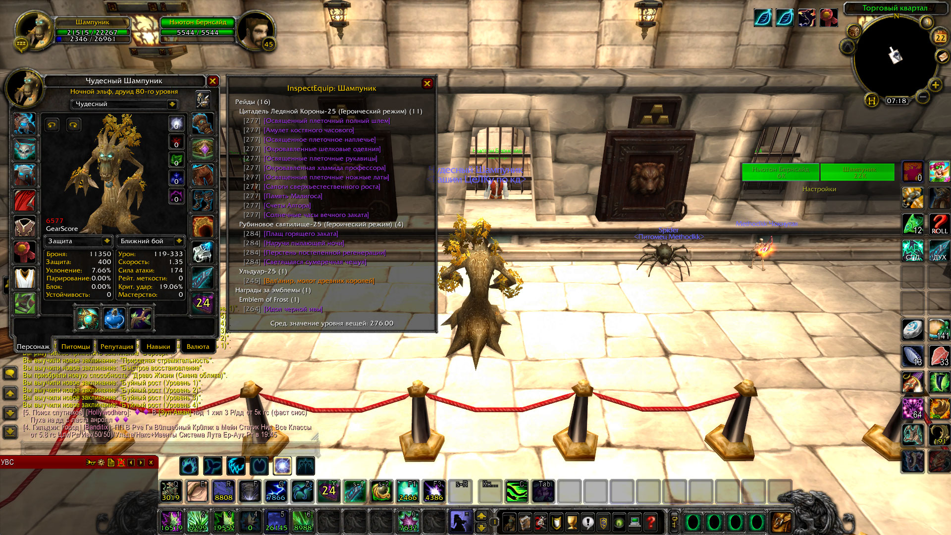 2-Очень мощный друид!!!!! Рдру 2 сборки(бис), на макс спд, спирит. Кот 2 сборки(хастовик, критовик) (бис). Мишка 2 сборки( фул груша стаминная, и Агильный) бис. У кота и у мишки разное т10 и нонсеты!!!!!!!!!!!!!!!!!. Сова можно сказать тоже фуловая, до биса 4 печеньки, катушка, нека и всё можно наваливать. PvP: Собран кот и рдру. Рдру а7+ всё что нужно( аркус для свапа на мп5, тринькеты и т.д), Кот себя по лучше чувствует, плечи а8, шея а8( как и нужно), вериса и т.д нонсет фуловый. (По тринькетам. Есть все абсолютно нужные тринькеты салейс, капли и т.п ерунда.