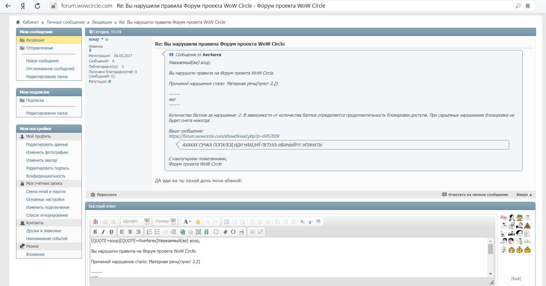 Нарушение: Матерная речь(пункт 2.2)