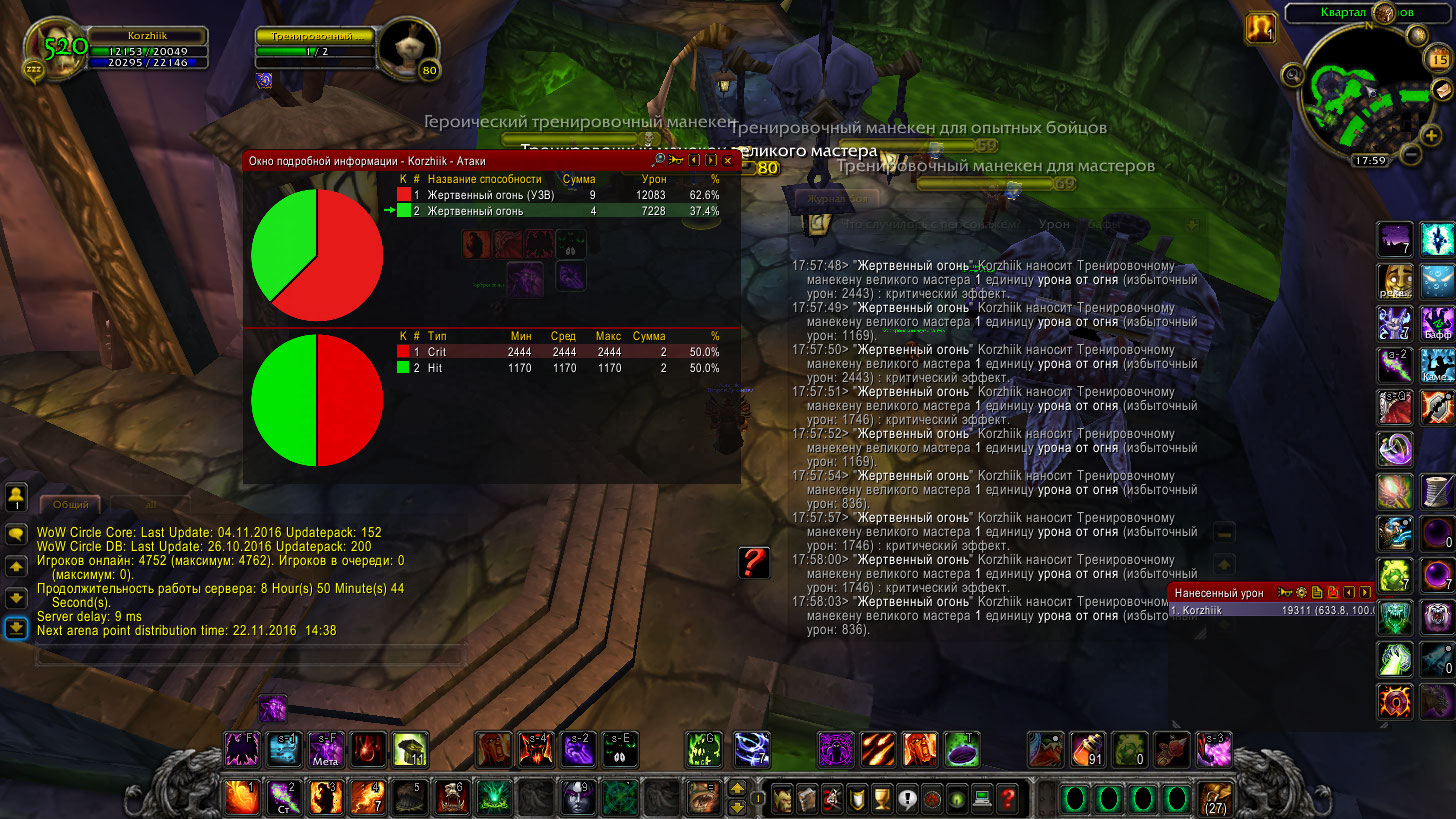 Так как лог не оповещает о успешный не мгновенных заклинаний то расчёт для ЖО: