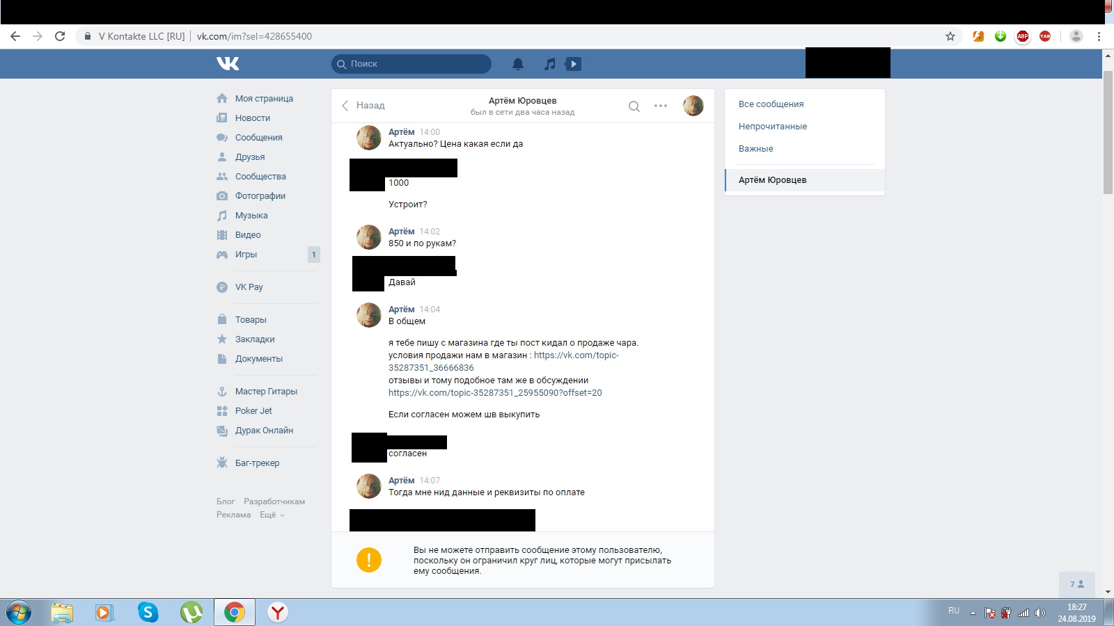 [17:33:13][17:33:13] DEN4UK1992 получил(а); вечный бан за торговля аккаунтом в магазин мошенников / кража .