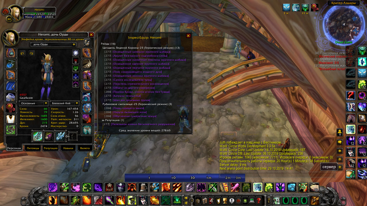 почти фул ачивы 11205,163к хк, куча всяких плюх приколюх,много транса,наиграно почти 300 дней,10 стр. маунтов куча донатных,8 страниц петов куча донатных,расказывать можно вечно цена 4к+% уже в лк