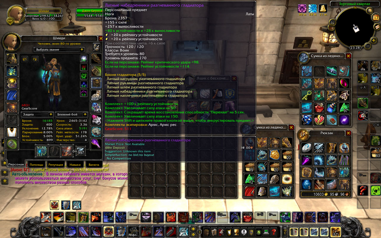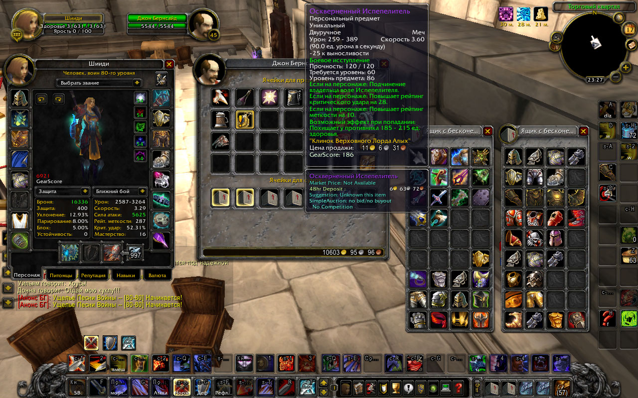 Сумки на 36 слотов, куча разных маунтов, инжа + ювелирка, есть много шмота на тран на любой вкус