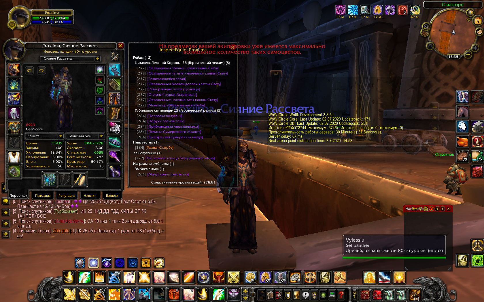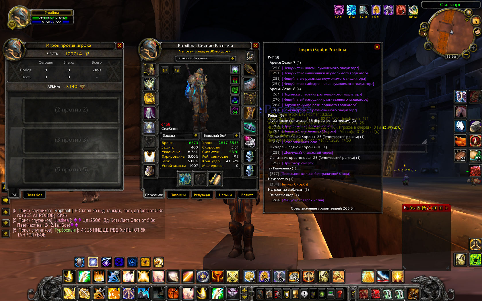 Паладин Бис Протик! Бис ретрик! Бис пвп холик и холи пве! есть Рпал пвп a7-a8, достижений более 500! маунты полные сумки шмотов! 100к чести 2100 арена поинтов!