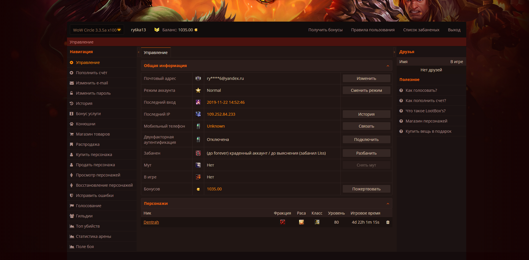 Забанен из-за взлома аккаунта https://forum.wowcircle.net/showthread.php?t=928328
