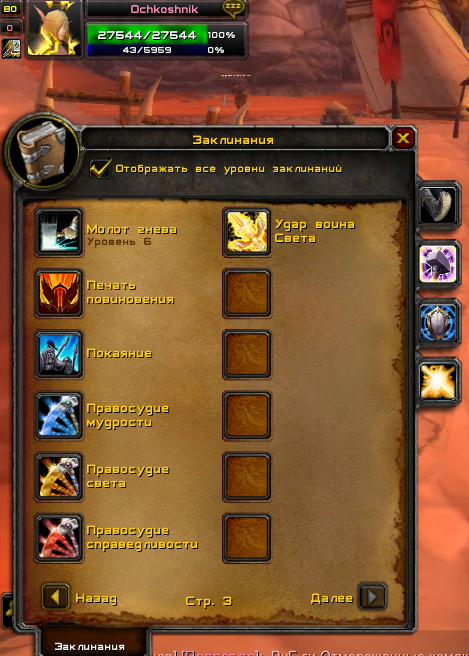 [Wotlk] Пропала печать порчи на паладине, делал в лк исправление ошибок, менял таланты, не помогает! Подскажите как исправить?