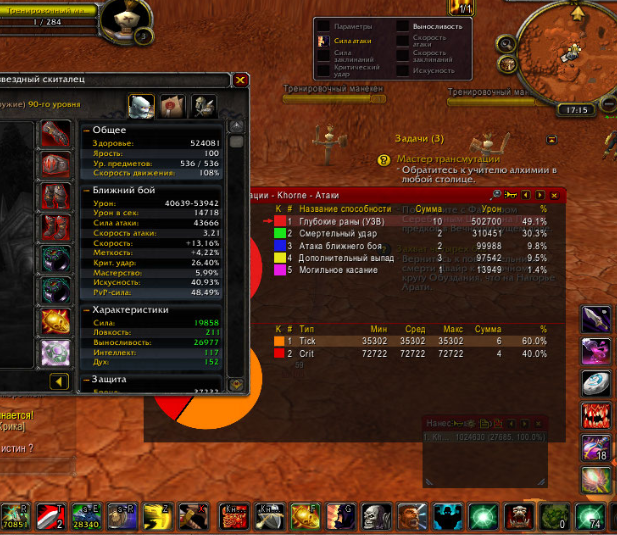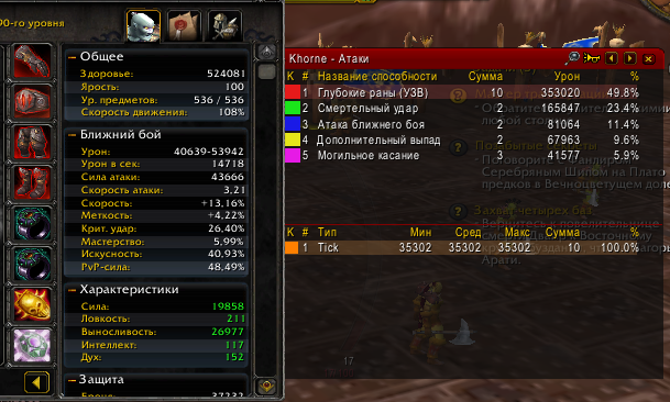 Который и отображен в рекаунте, с расхождением на 20-30 урона за 10 тиков! А посему, прошу всех спорщиков удалиться из раздела воина и создавать темы уже не о глубоких ранах, а о взаимодействии глубоких ран с пвп-силой и пвп-устойчивостью игроков, или возможно броней, ударами колоссов и прочем-прочем.Цитата: