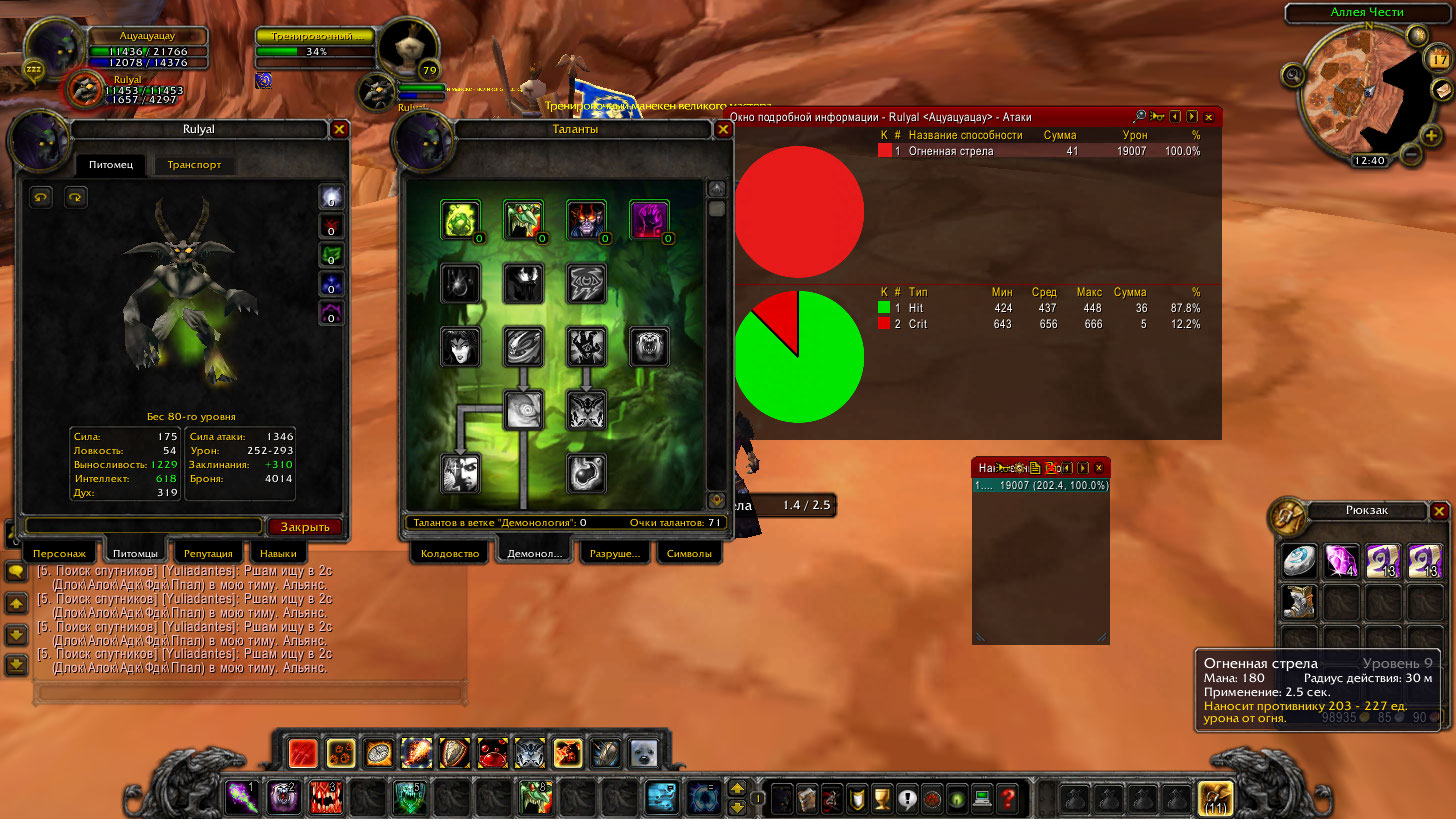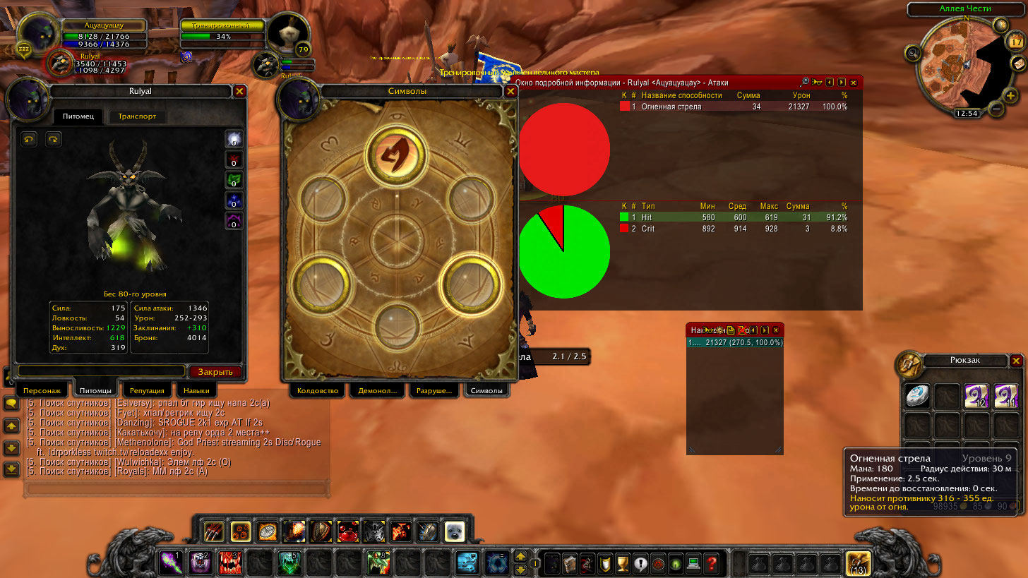 Итоговая окончательная формула для орка, на нашем сервере. Это уже с мастером демонологом.
