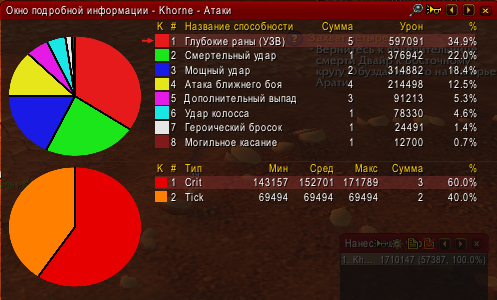 334128,32/5=66825,66 урон за тик не критом, на скрине даже 69к, не знаю откуда взялось ещё 2.5к, но криты от глубоких ран увеличены флагом, отсюда и 170к.