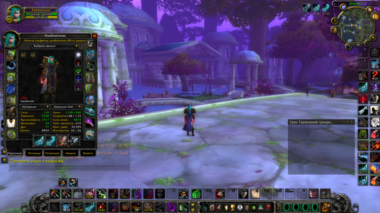 Прыжки привратились в чтото очень прикольное. Но учится им надо ой не мало. Так же можно видимо вырабатывать стиль игры.Ночная эльфийка это шд рог это точно.Поначало выглядило не очень и глупо. Делать их и давать дпс одновремено это тяжолое искуство. Естествено чучуть дпс теряется видимо.
