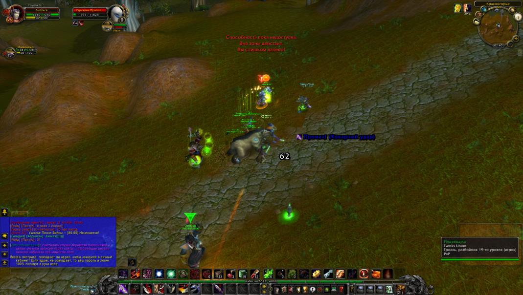 Оф топом хотел поругать орду 29 брекета. За вас целую неделю бегал и не давал играть недоделок-рога, зелёного цвета с ником Твинки или что-то типа того с пухами с норда. Вам не стыдно? Что, не могли его заскринить? Сейчас он в баньке наконец то, его ГМ спалил после спама в all чат. А сегодня весь день лок 23 лвл ваншотил всех оком килрога и о5 же никто его не пнул. Я его заскринил, отписал и предупредил, говорит, что не знал, но могли бы и сами решить эту проблемму. У альянса тож появился один перец с подозрительно большим дамагом, но пока не спалился. Пасём его. Давайте всё-таки уважительнее друг к другу относиться.