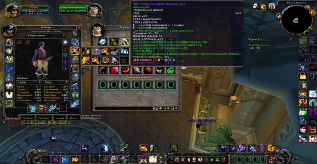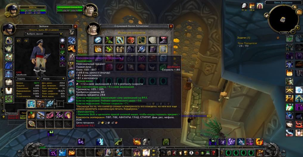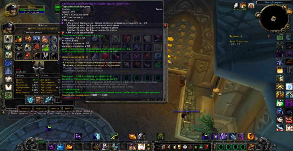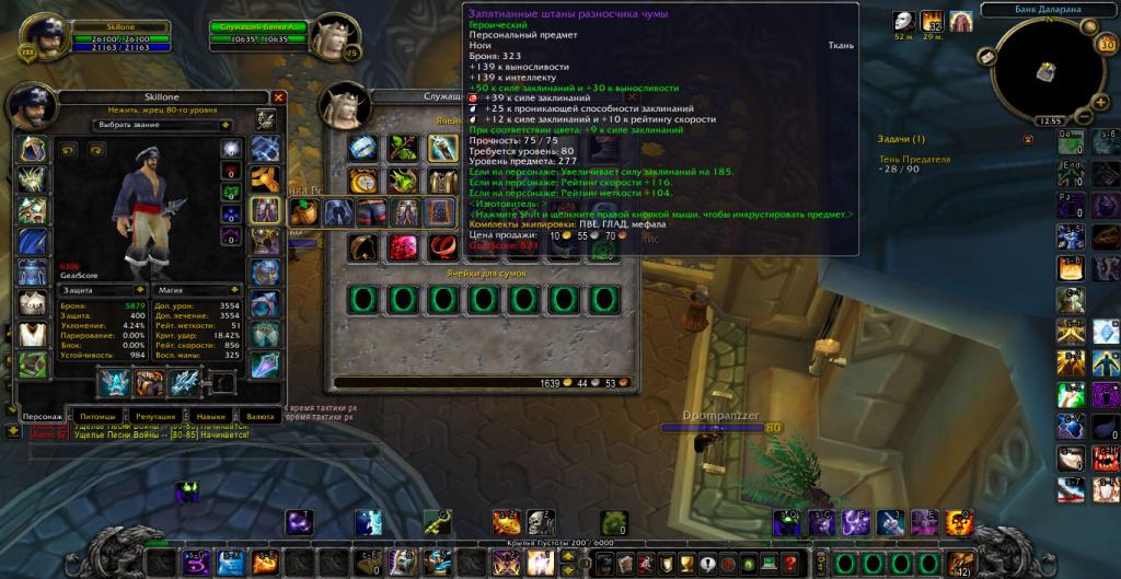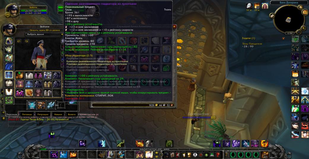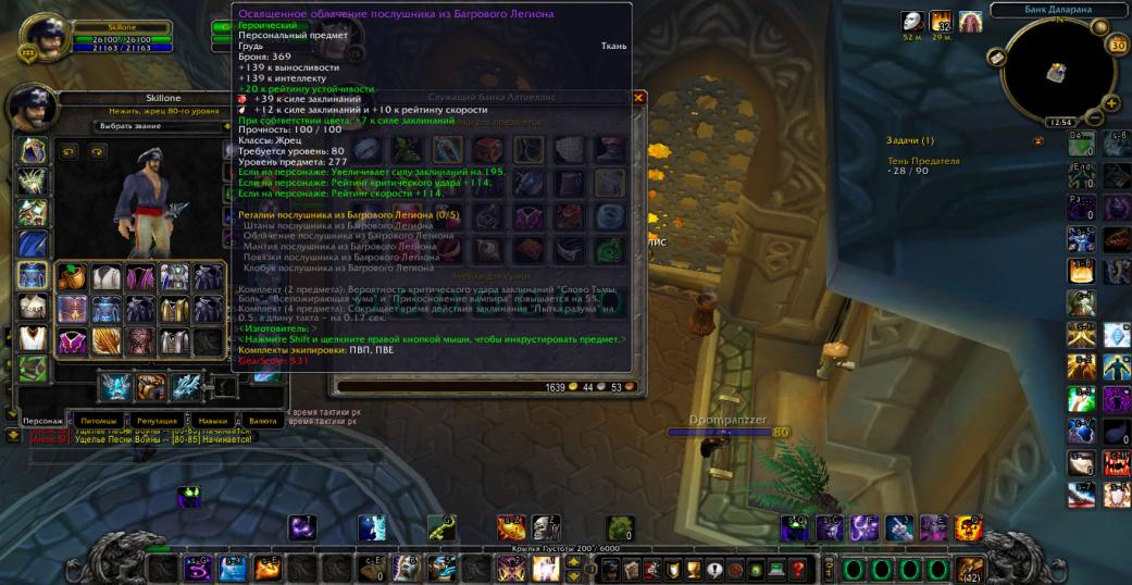 Добрый день,вашему внимаю представляется Жрец,эквипом 5\5 а8 на шп,и 4\5 а8 на дц( ну плечи всё равно из шп в дц ставим)