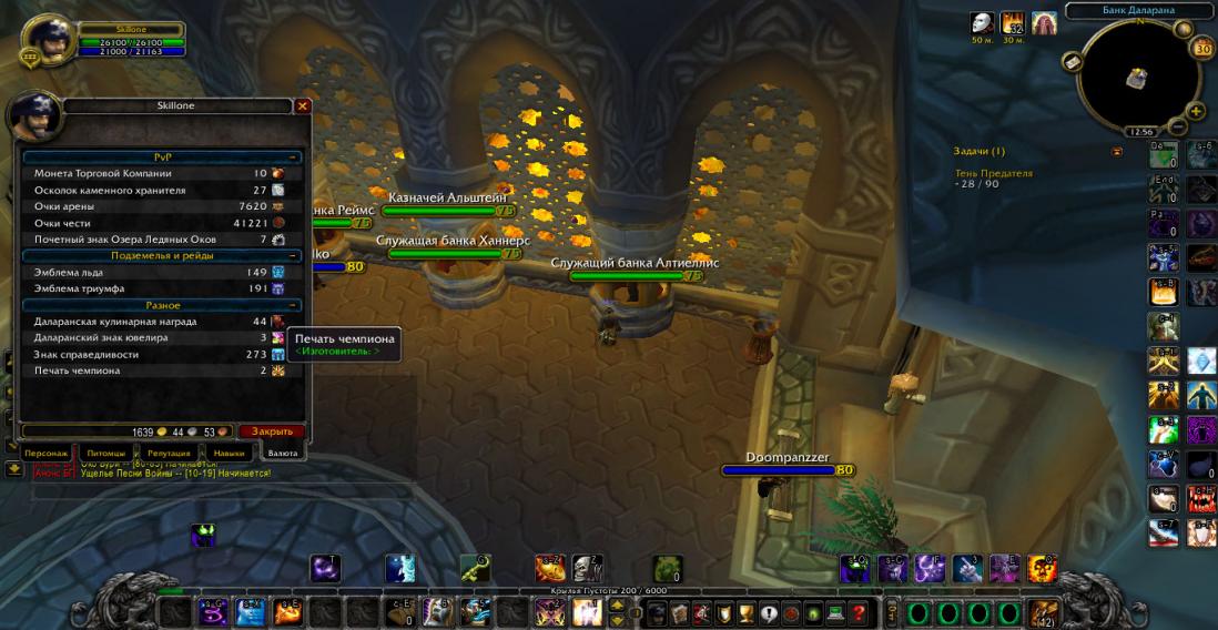 Прист очень заряженный, 2 профы инчат и юва по фулу,куча книги познания символов валяется в банке,почти 8К АПА арены(неуспели т2 взять скинули сезон) 7 страниц питомцев, десять!(10) страниц маунтов ,могу выделить ворона,призрачного тигра,коня за шм и ещё пара доначенных.
