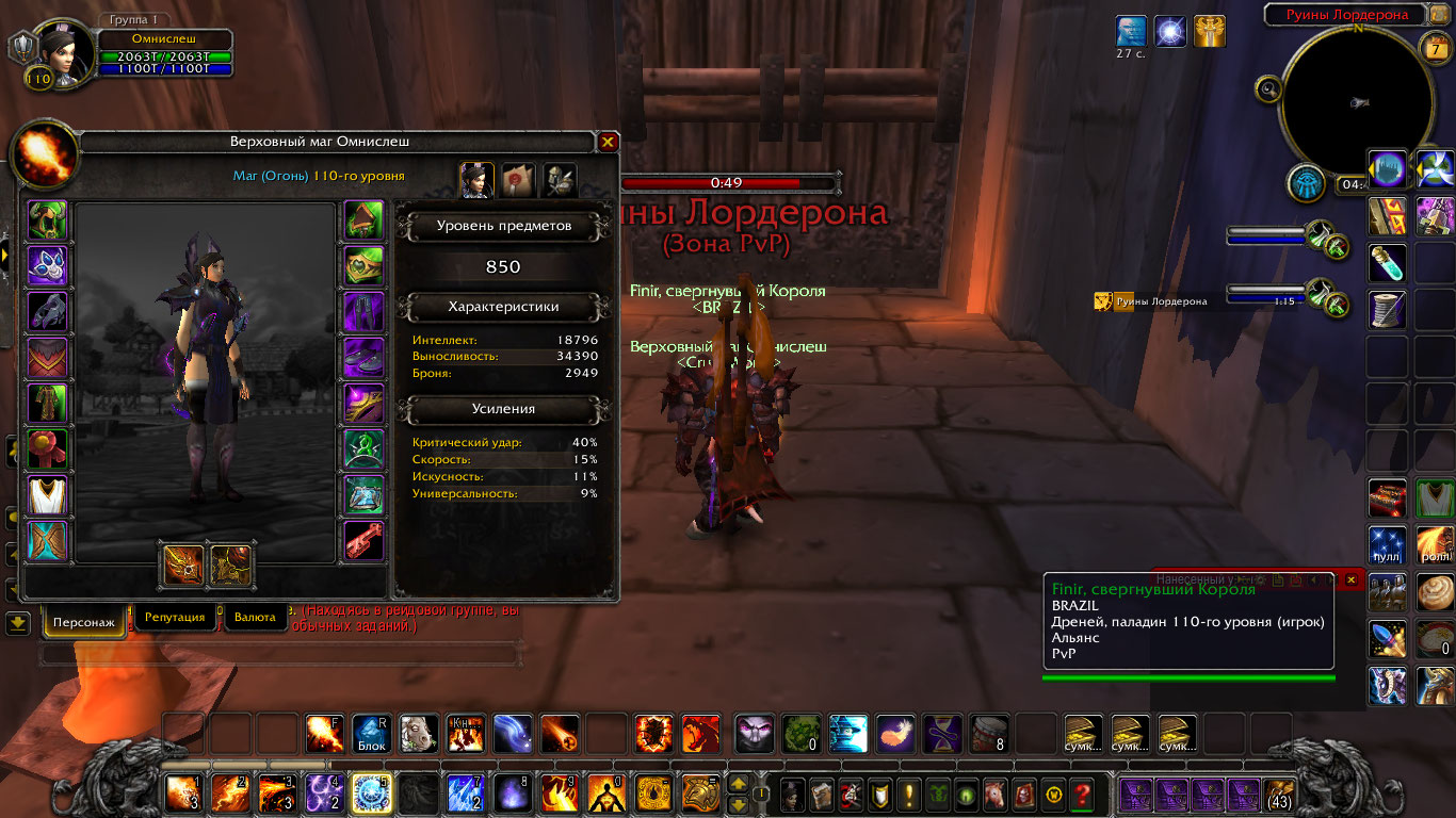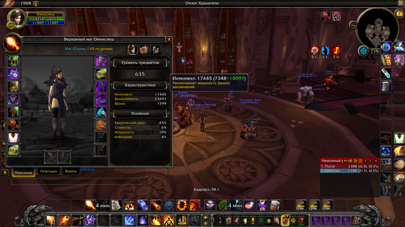 А это скрин моего мага с Фаершторма, ибо на вашем сервере у меня нет пока такого шмота для теста да и все равно все значения у вас взяты оттуда