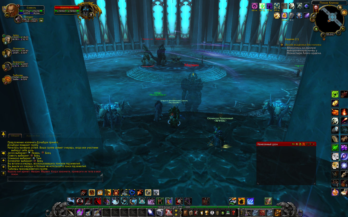 На скриншотах видно, что была запущена двойная фаза. Этим доказывает выход двух личей, и двойные реплики боссов.