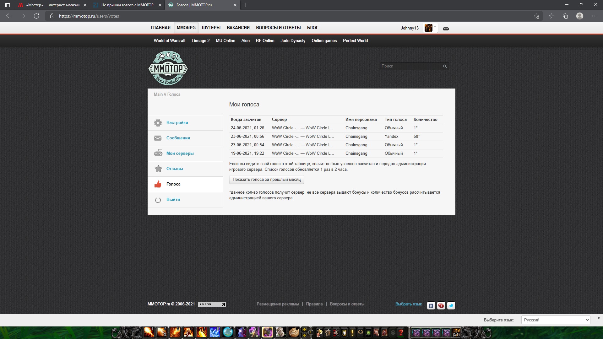 Вчера кидал через MMOTOP не пришли ник Chainsgnag, 50 голосов