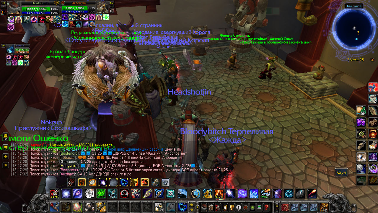 Доброго времени суток уважаемая администрация проекта Wowcircle. Постоянно данный игрок сидит, загородив собой полностью моба так, что никак его не задействовать. Прошу принять меры по отношению к данному игроку, чтобы в дальнейшем он не создавал проблемы подобного рода, либо по отношению к мобу, который даёт инженерам доступ к аукциону. Скрин во вложении. Вотлк х100 ордаWoWScrnShot_070822_131733.jpg