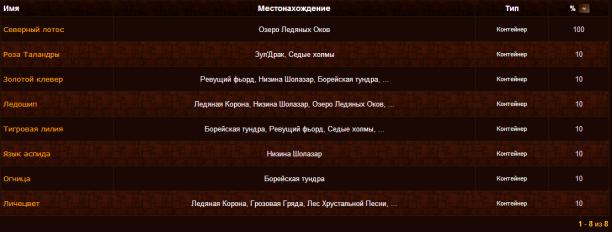 2. Шанс получения с трав Нордскола сильно завышен (практически 50%) вместо заявленных 8% (wоwhead.соm) и 10% (WoWway.ru). Официальный блю пост от 18.02.2010 "Вероятность выпадения северного лотоса при сборе других трав Нордскола увеличена на 50% (с 5% до 7,5%). "