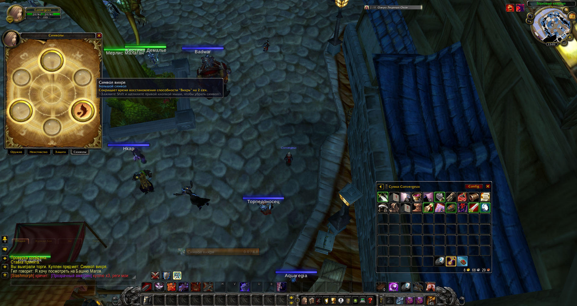 2) На воине с ником "Жанафриске" символ на вихрь не снижает кд на 2 секунды, как должен это делать, плюс некорректное описание спела (см. скриншот)