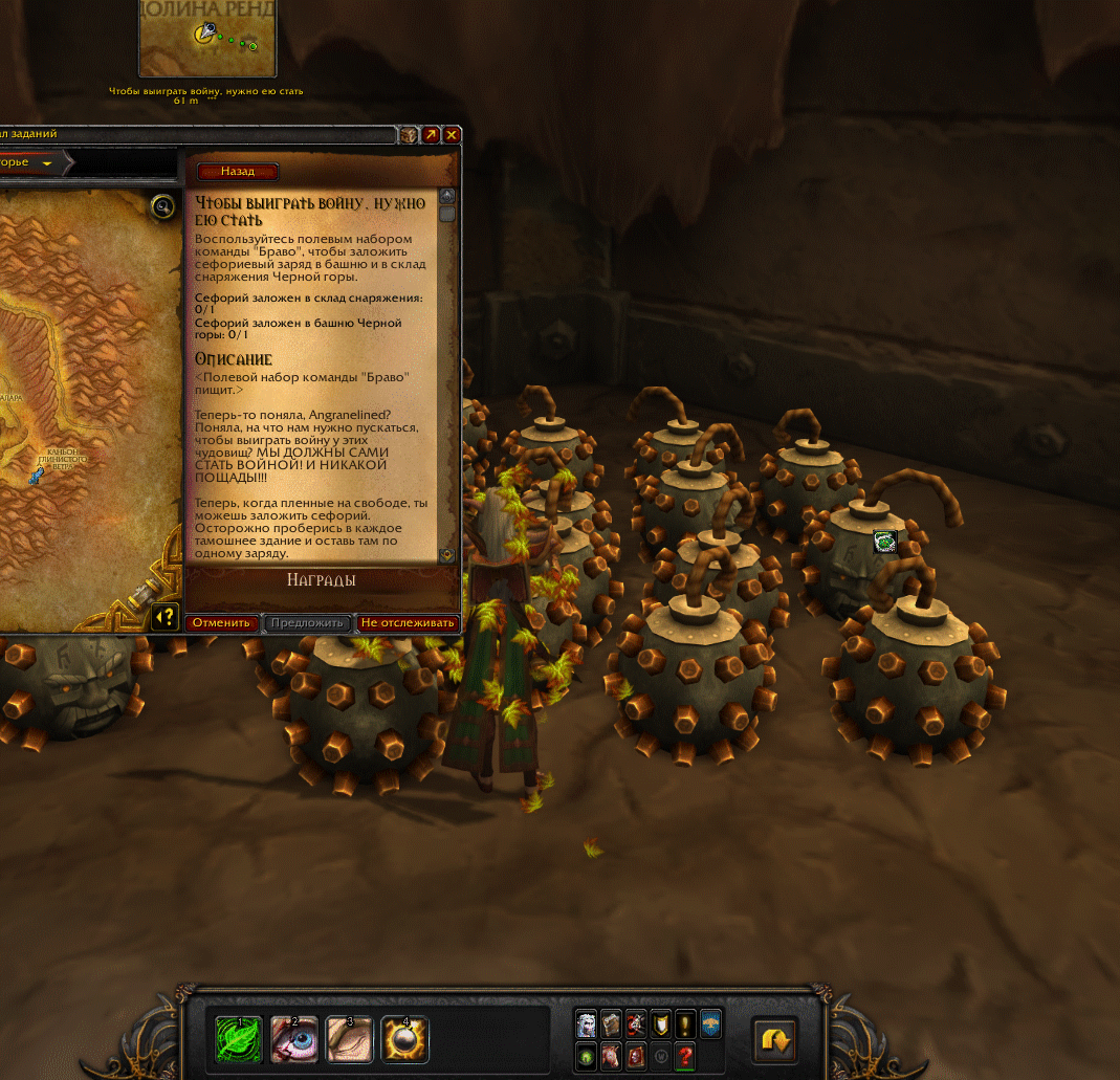2. Используя https://www.wowhead.com/ru/item=6038...ы-браво войдя на башню или к складу бомб ничего не происходит и задание не засчитывается