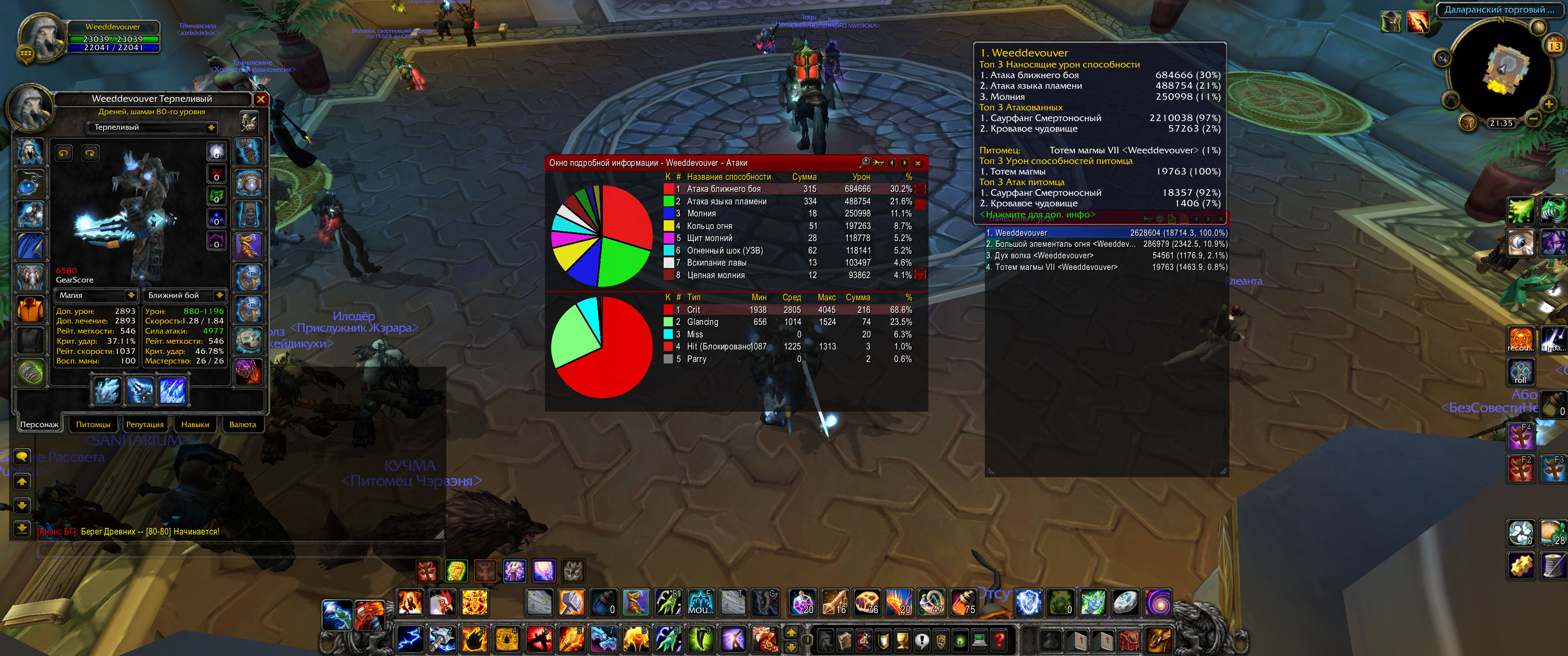 Чуть не забыл самое главное - скрины с дпс. Человек я ленивый, от хардкора давно устал, по этому хожу с далеко не топовой ги, где спокойные адекватные рлы, которые сильно меня не ругают. Как следствие у нас очень низкий тотал, и орк иногда живет больше 2х минут, даже элем пропадает. Еще я очень часто экспериментировал перед написанием гайда, и были походы с теренасом+арп и тд, которые ожидаемо не оправдали себя, по этому скрины только с одного рейда, где сборка была полностью по гайду. Орк жил около 140 секунд. В таком рейде вышло 19к дпса.