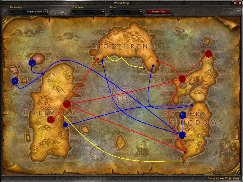 Можно комбинировать и иные варианты – маршрут может выглядеть следующим образом: Дун Морог – Штормград – Темные берега – Тельдрассил\Остров лазурной дымки.
