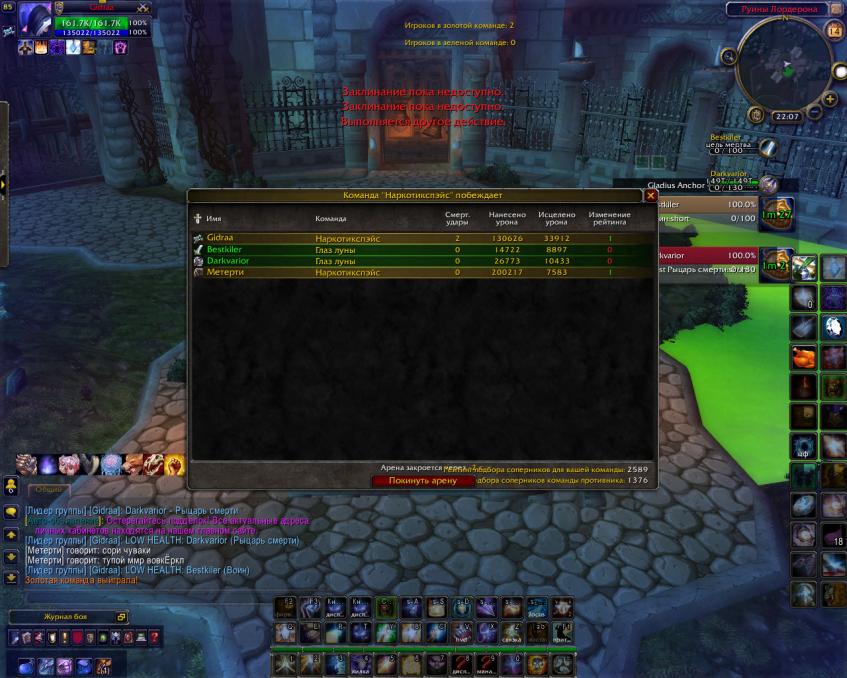 Жду арену по 10 минут !играю на большом ммр, против 1200-1700 ммр это ппц. ЖДЯ арену по 10 минут как я уже говорил!и дают за победу 1 очко !нельзя ли сделать подбор соперников хотябы ,повторюсь ХОТЯБЫ от 2200!мне и многим ненравится ждать по 10 минут, чтобы набить какое то 1 очко рейта против таких соперников!есть люди у которых 2200+ и мы на них не поподаем!ждя 10 минут попадаем на маленький рейт соперников!я помню летом было дело на х100 когда подбор соперников осуществлялся до 1700(маленткий рейт)и от 1700 и выше (высокий рейт)и люди играя допустим на 1699 ммр не могли попасть против соперников у которых 1701 ммр!много чего лишнего написал можно было двумя словами написать!но все таки хочется аренить против скилл противников!а не ждать по 10 минут зная что там выйдут какие то б...и кр..бы !!! введите такую же систему до 2000 (маленький рейт)свыше 2000 к (большой рейт)или на худой конец время реги арены с 10 минут до 2-3 минут!потому что это не дело!WoWScrnShot_031413_211254.jpg