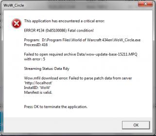 Решил поиграть с английской версией клиента. Скачал, папок WTF Cache Interface не было. В папке Data/enGB поправил реалмлист. При запуске Wow_circle.exe c правами администратора получаем такую ошибку Безымянный.jpg. Удаляю файлы wow.mfil и wow.tfil, получаем Безымянный2.png. http://forum.wowcircle.com/showthread.php?t=187320 выполнил все советы, не помогло) Даж не представляю, что делать. Русская версия клиента работает нормально.