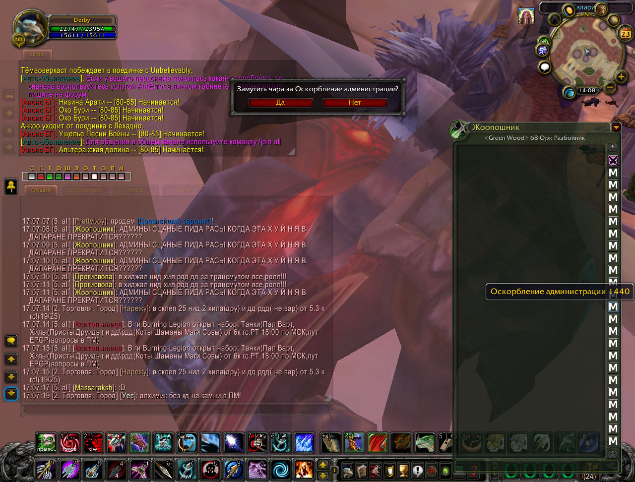 сидит админ в Даларане и смотрит на то,что происходит там-даёт мут людям,но читеров не трогает
